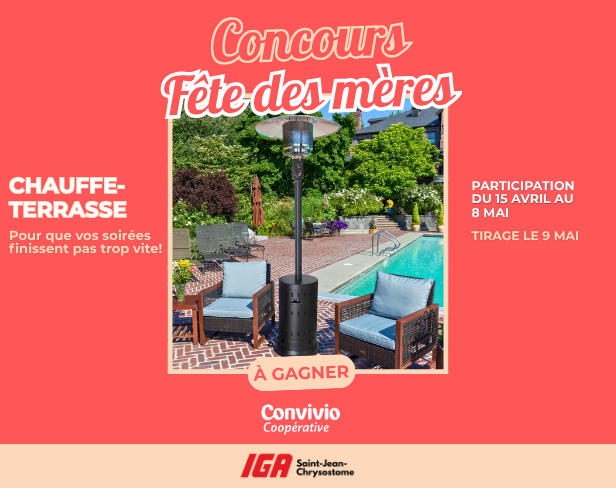 Lire l'articleVous habitez à Saint-Jean-Chrysostome et êtes client de notre beau IGA Convivio ? C'est votre jour de chance ! Surveillez bien votre boîte aux lettres, une surprise s'en vient ! ...