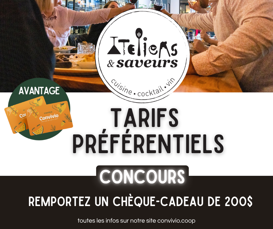 Lire l'articleBonne nouvelle pour curieux/curieuses, épicuriens/épicuriennes ou amateur/amatrice de bonne bouffe ! Votre coopérative a conclu un nouveau partenariat pour ses membres avec un partenaire reconnu dans la région de Québec : Ateliers &...