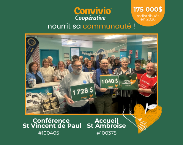 Lire l'articleConvivio, Coopérative reverse 1 676 304 $ en ristourne à ses membres et 175 000$ à la sécurité alimentaire de sa communauté ...
