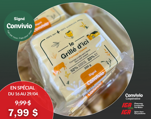 Connaissez-vous le Grillé d'ici ? Grandement apprécié de la clientèle, le Grillé d'ici de la gamme Signé Convivio est fait à 100 % de lait et est 100 % québécois....