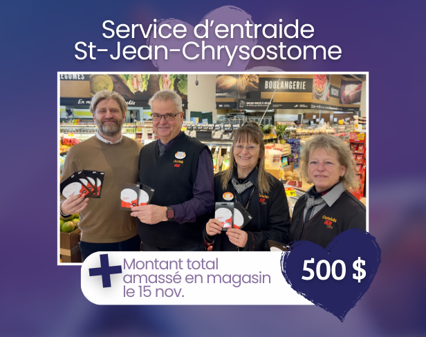 En décembre 2025, ce sont plus de 61 100 $ ont été récoltés dans nos 4 magasins coopératifs IGA extra et IGA , en caisse et en dons directs auprès de nos organismes présents en magasin en décembre.