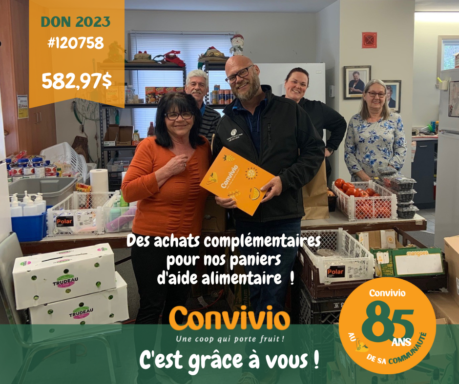 Convivio, Coopérative reverse 1 676 304 $ en ristourne à ses membres et 175 000$ à la sécurité alimentaire de sa communauté Québec, le 2 décembre...
