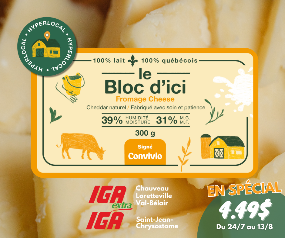Ne manquez pas cette offre et goûtez à l’authenticité du Québec avec le fromage Bloc d'Ici, disponible uniquement dans vos 4 magasins Convivio !