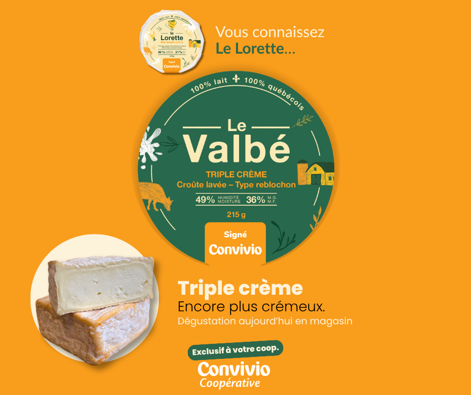 Vous connaissez le Lorette, notre double crème bien d'ici qui a su conquérir les amateurs de fromages fins de la région ? Aujourd'hui, on vous présente son petit nouveau : le Valbé.