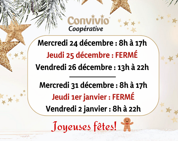 Voici les horaires des Fêtes vos 4 IGA et IGA extra Convivio :