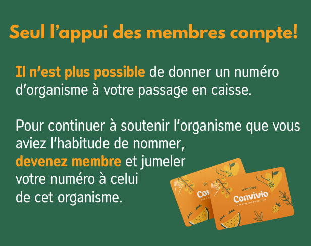 En tant que membre Convivio, vous pouvez appuyer - gratuitement - un organisme de votre communauté (sans impact sur votre ristourne annuelle).