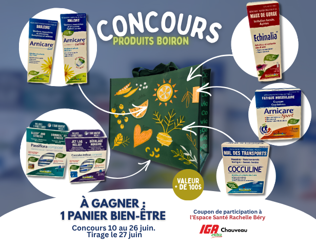 Lire l'articleCe mois-ci, dans votre Espace Santé Rachelle Béry du IGA Extra Convivio, secteur Chauveau, on vous gâte avec un super lot rempli de douceurs à base d’Arnica, l’incontournable alliée naturelle contre les...