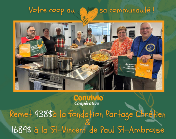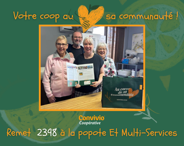 Lire l'articleConvivio, Coopérative reverse 1 676 304 $ en ristourne à ses membres et 175 000$ à la sécurité alimentaire de sa communauté ...