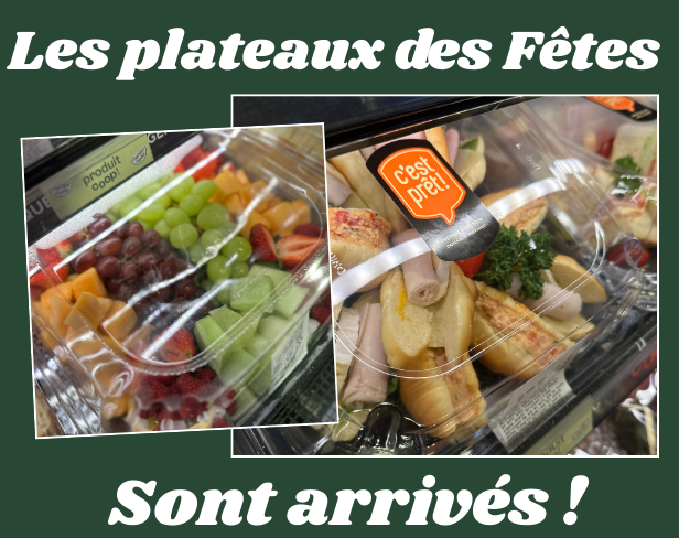 Vous manquez de temps pour préparer vos repas des Fêtes ? Aucun problème ! Découvrez nos nombreuses variétés de plateaux festifs : fruits et légumes, apéros, pains fourrés, desserts festifs, wraps et...