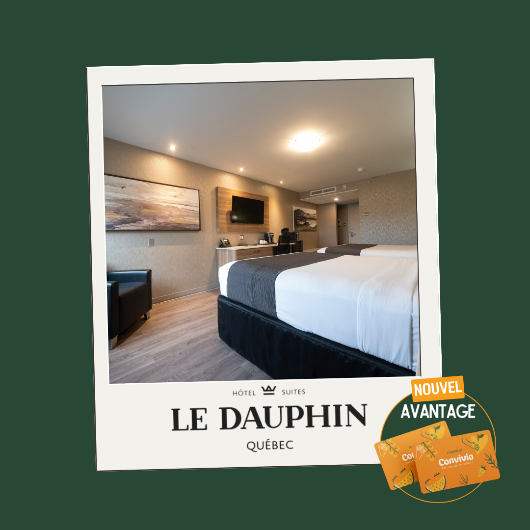 Les membres Convivio obtiennent dès maintenant 10 % de rabais en tout temps sur l'hébergement de leur choix dans les Hôtels Le Dauphin à Québec et Drummondville.