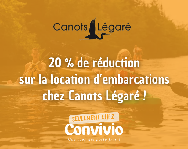 Avec Canots Légaré, ce sont 20% de rabais sur la location d'embarcation (applicable aux tarifs réguliers d’une journée complète ou d’une soirée complète) que nos membres peuvent bénéficer.