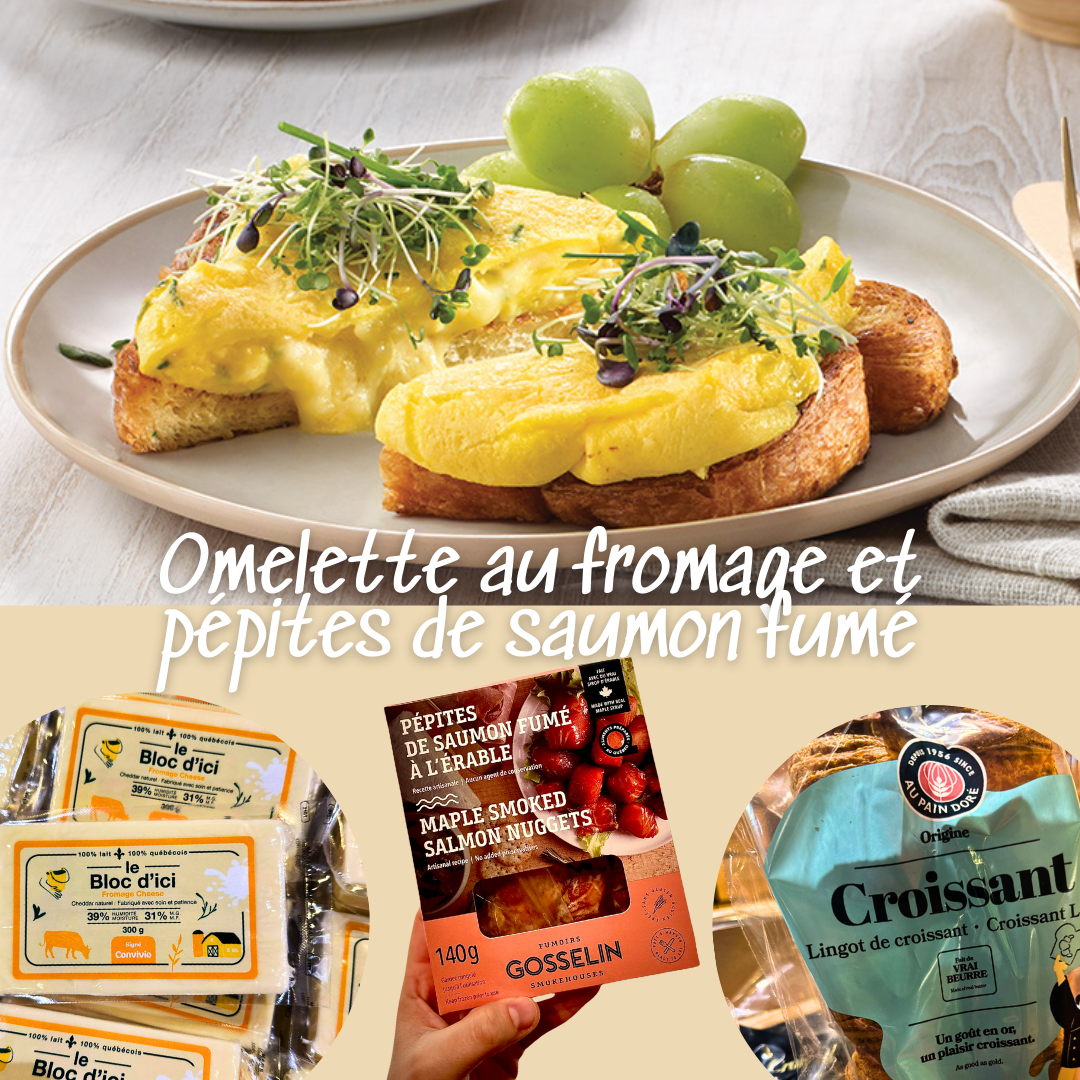 Pour un brunch ou un déjeuner du temps des sucres, l’omelette au fromage et lardons de saumon fumé à l’érable est une belle façon de démarrer la journée. Le saumon fumé, parfumé au sirop d’érable, se marie à merveille avec le fromage fondant, offrant une omelette savoureuse et originale. Pour le fromage, on vous recommande bien sûr notre Bloc d'ici Signé Convivio, un cheddar 100% lait 100% québécois.