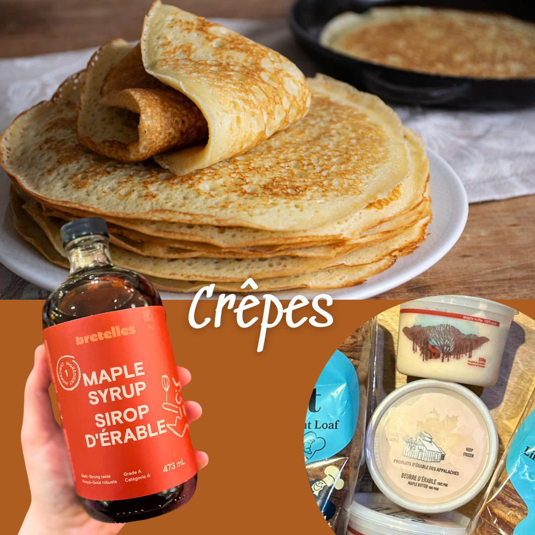 Et pour clore votre repas, rien de tel que des crêpes garnies de beurre d’érable fondant et nappées de sirop d’érable pur. C’est un dessert simple mais délicieux qui fait toujours plaisir, parfait pour petits et grands.