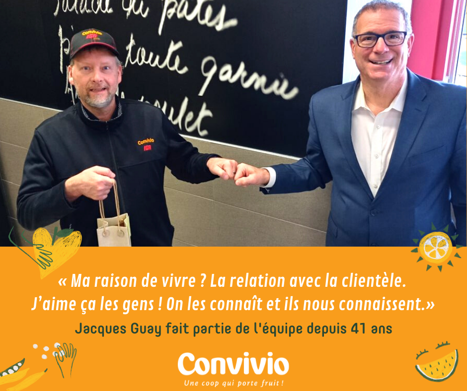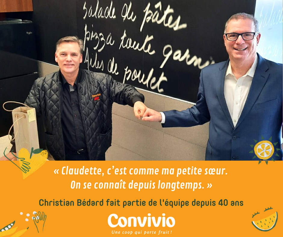 Au nom des 600 employés de Convivio, des 22 500 membres de la coop et de tous nos clients de nos 3 magasins,