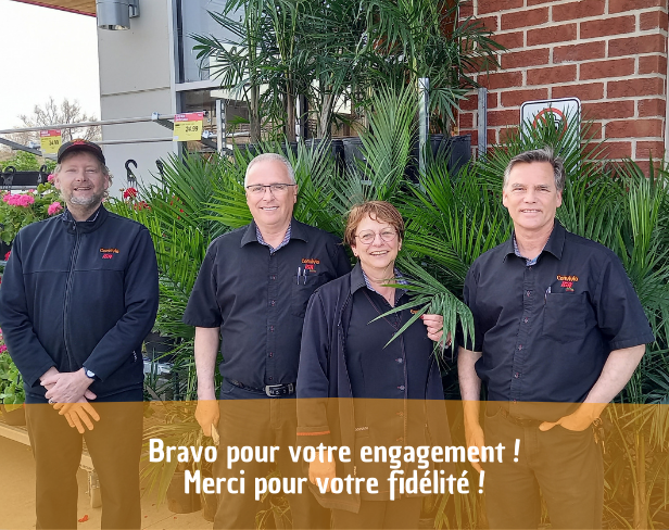 Pierre Huot, Claudette Nadeau, Jacques Guay et Christian Bédard ont respectivement 45 ans, 41 ans, 41 ans et 40 ans de carrière au sein de la coopérative Convivio. Tous travaillent dans notre succursale de Loretteville.
