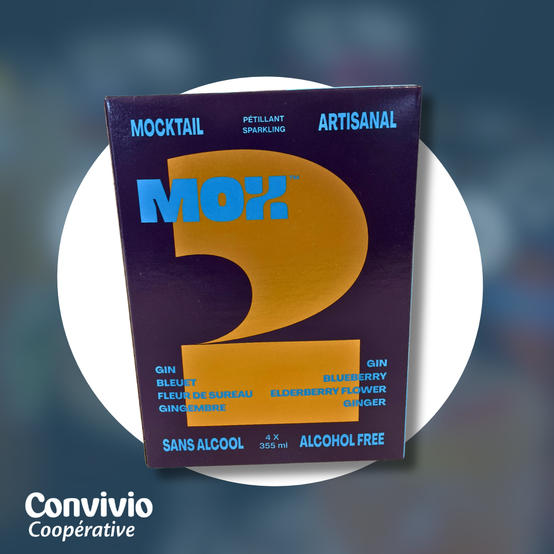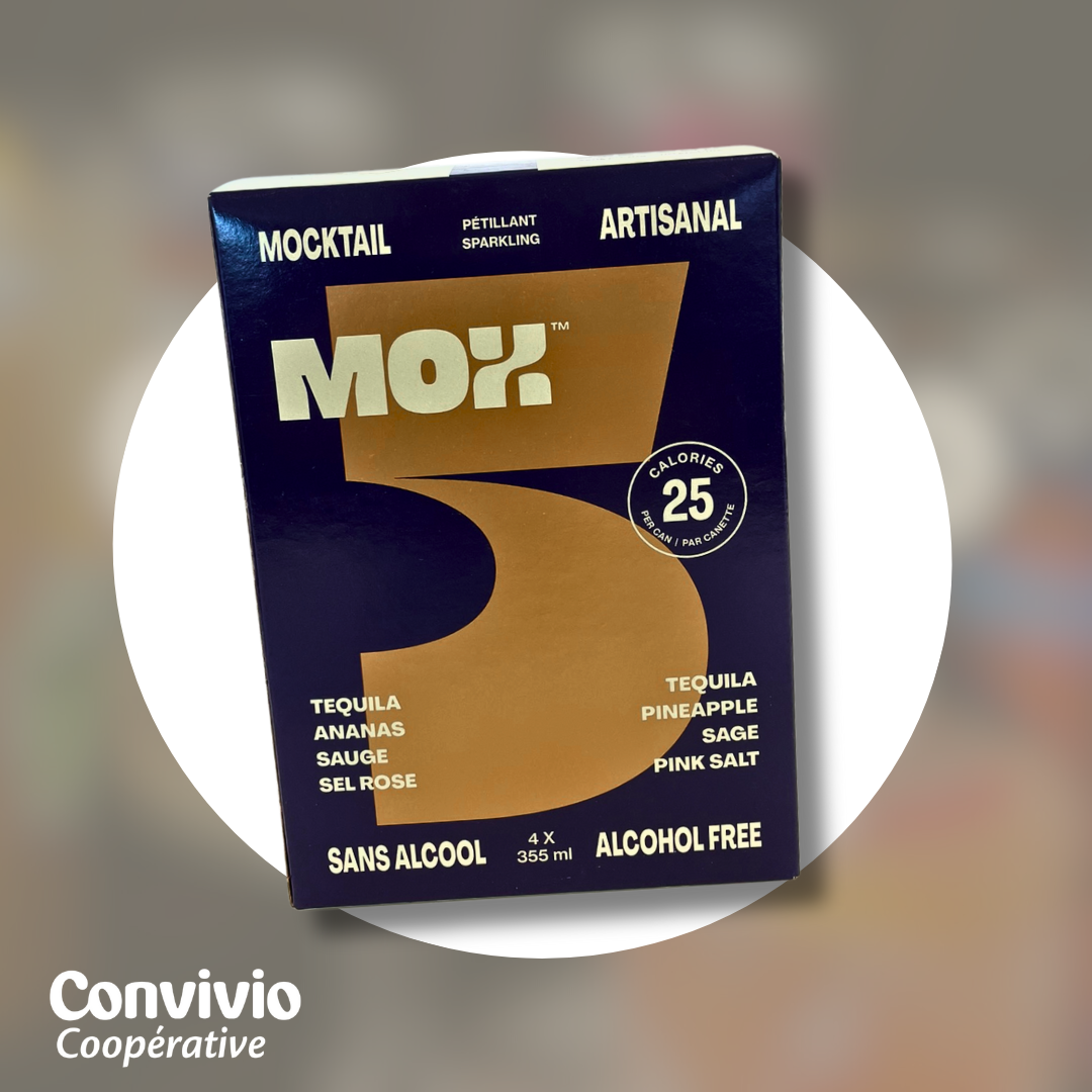 5 caisses de mocktails MOX (4 cannettes/caisse), incluant :