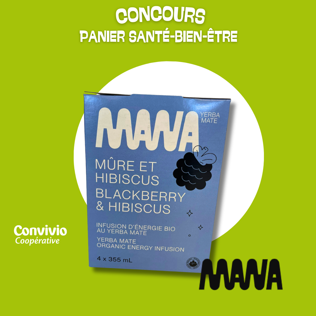 1 caisse (4 x 355 ml) Mûre et Hibiscus - MANA : Un rayon de soleil dans chaque gorgée.