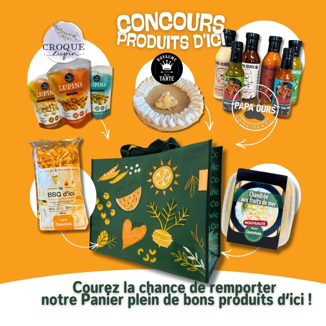 Que ce soit avec les produits Croque Lupin, Papa Ours, Signé Convivio ou encore Le Royaume de la Tarte, notre Panier d’une valeur de plus de 130$ est rempli de délices faits d’ici ! Saisissez votre chance !