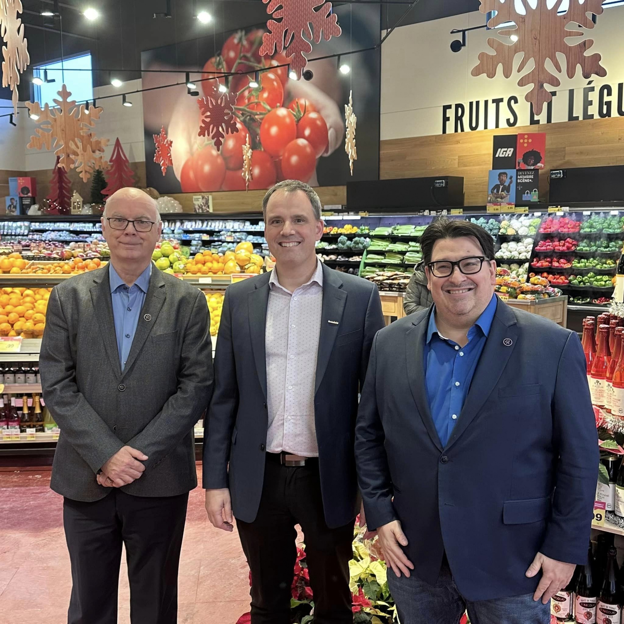 Nous sommes honorés d’avoir reçu la visite de M . Mario Asselin, député de Vanier-Les Rivières et M. Sylvain Levesque, député de Chauveau, élus de nos secteurs. Ensemble, nous avons pu discuter du modèle coopératif en alimentation, de notre grande implication dans le milieu et des enjeux que vivent les marchands indépendants ces dernières années.