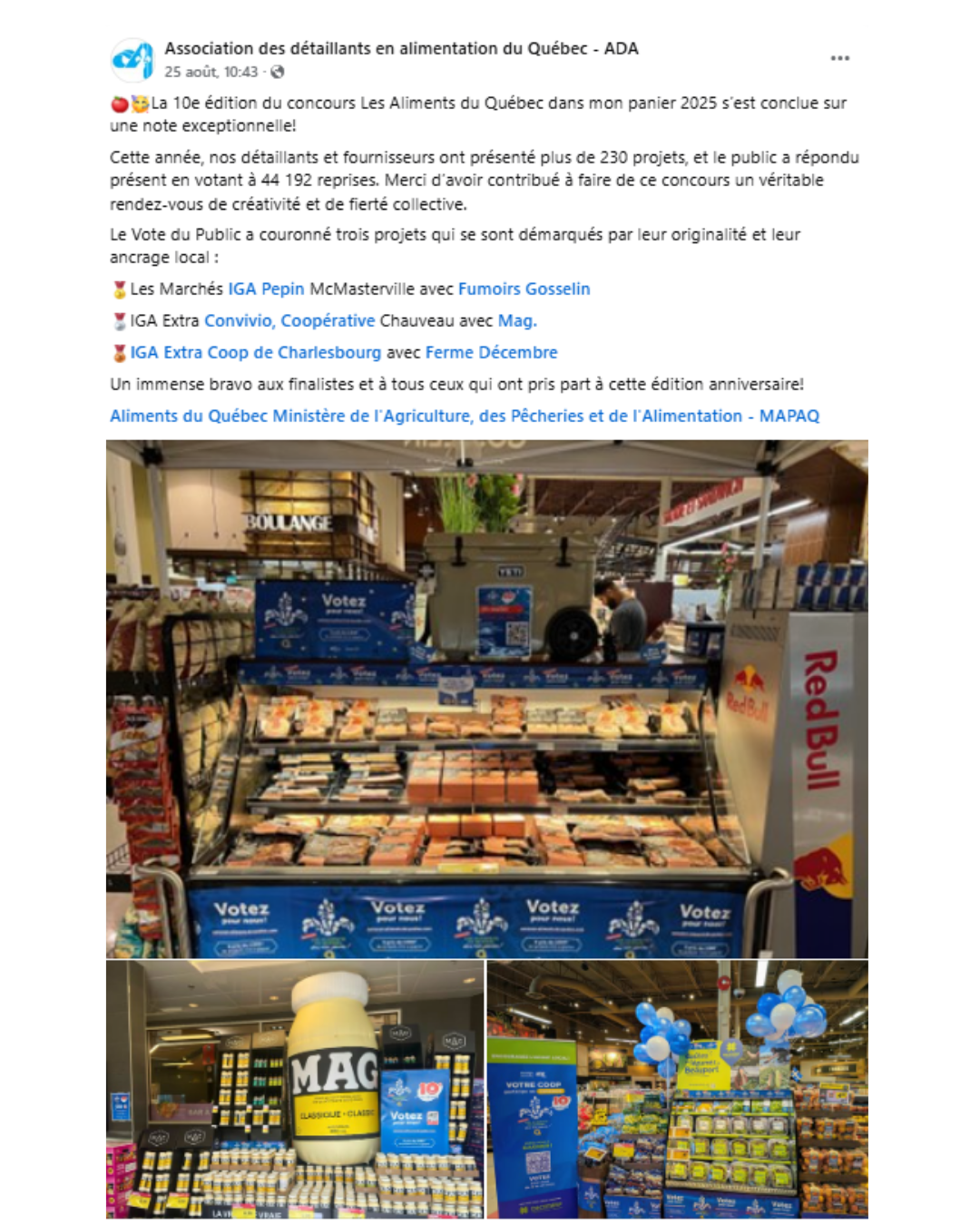 Parce qu’on est fiers de notre modèle coopératif, on félicite la IGA Extra Coop de Charlesbourg pour sa 3ème place avec Ferme Décembre.