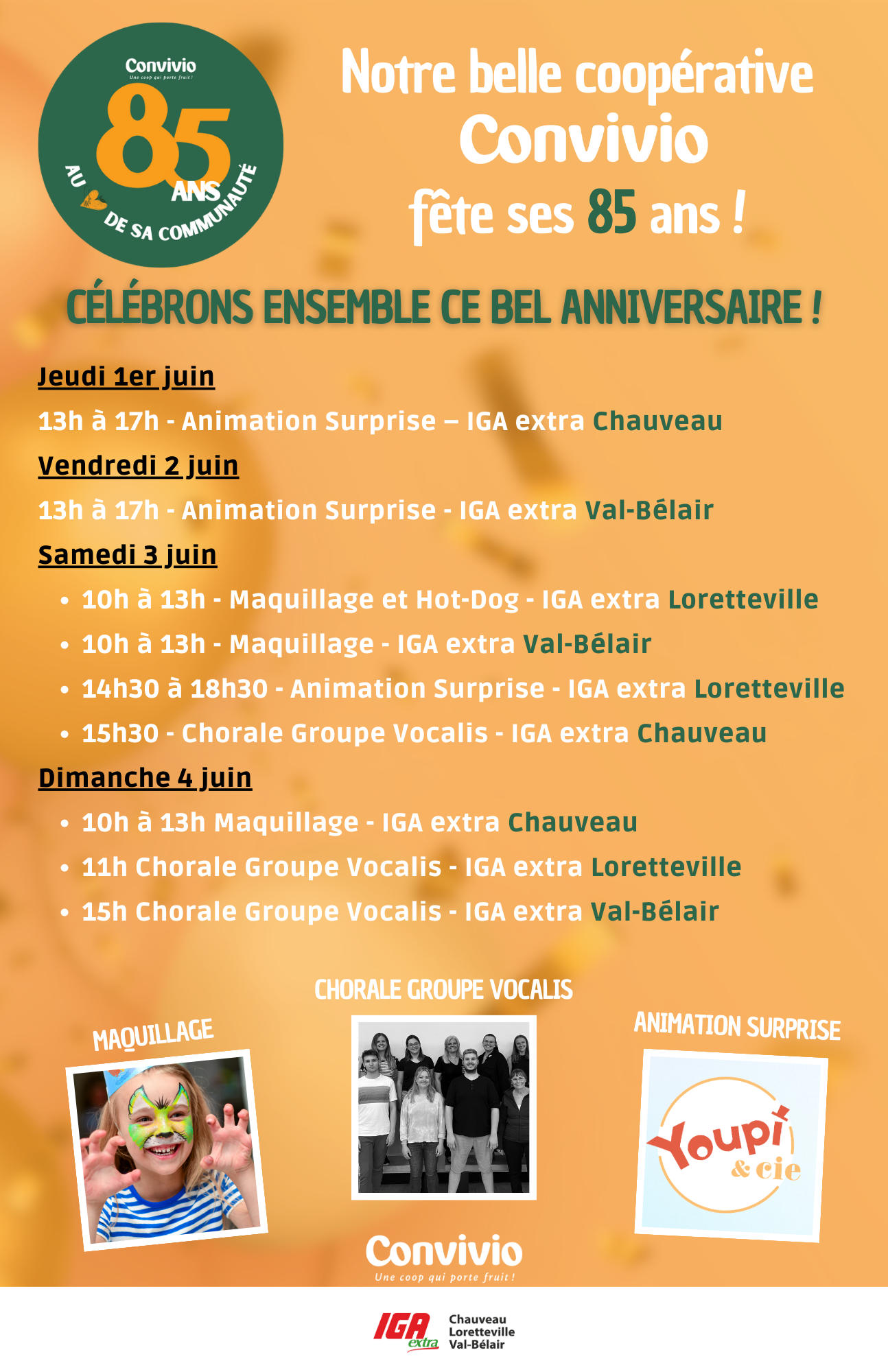 Du 1er au 4 juin, célébrez avec nous les 85 ans de notre belle coopérative Convivio !