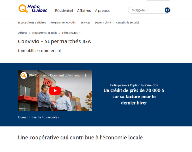 Témoignage client - Convivio Supermarchés IGA | Hydro-Québec (hydroquebec.com)