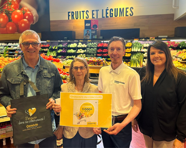 Mme Margot Robin est la grande gagnante de notre concours, organisé en collaboration avec notre partenaire Promutuel Assurance Les Bâtisseurs. En tant que membre de la coopérative, elle remporte 1000 $ d'épicerie chez Convivio !
