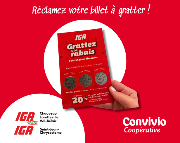 Faire des économies en faisant son épicerie, c’est toujours une bonne nouvelle. Du 15 janvier au 4 février, à votre IGA Convivio de St-Jean-Chrysostome, recevez un...