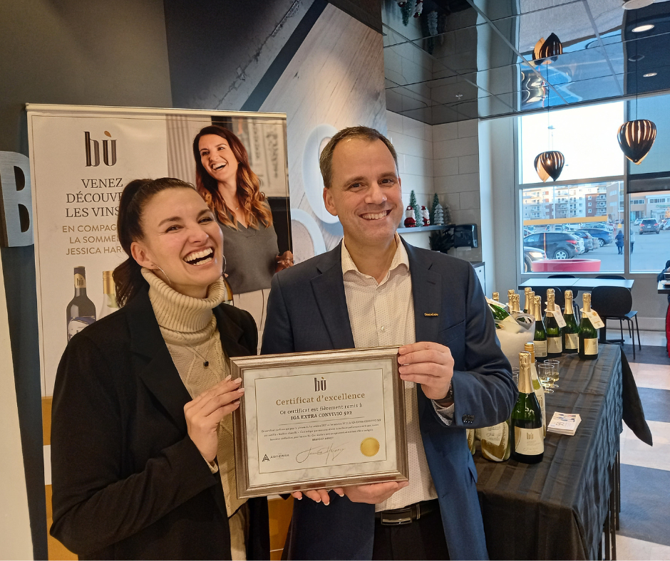Votre magasin Convivio IGA extra de Chauveau a reçu le certificat du meilleur vendeur de vins Bù du Québec. Merci pour votre fidélité.
