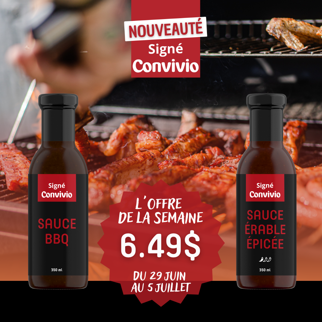Du jeudi 29 juin au mercredi 5 juillet, profitez de nos Sauces Signé Convivio au prix de 6.49$ au lieu de 7$49 !