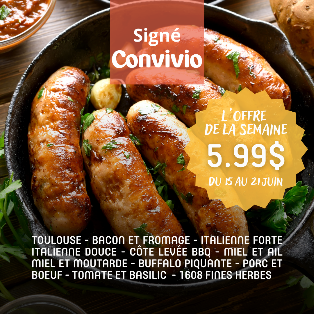 Nos Saucisses Signé Convivio sont en spécial cette semaine à 5.99$ !