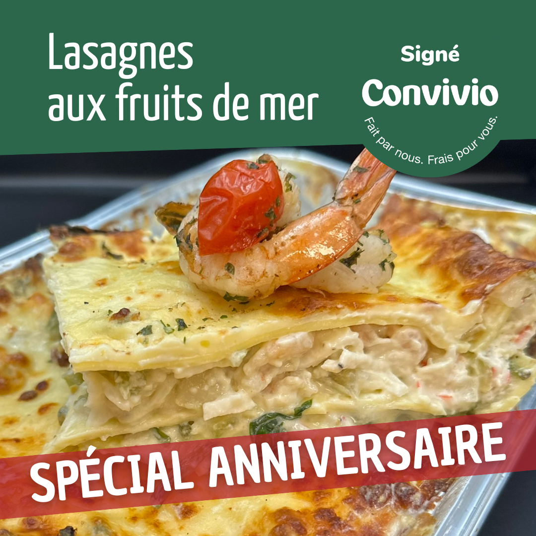 Pour fêter cet anniversaire, profitez d’un prix spécial, disponible exclusivement dans vos quatre magasins Convivio ! Une belle occasion de redécouvrir ce plat familial apprécié, du 24/10 au 06/11.