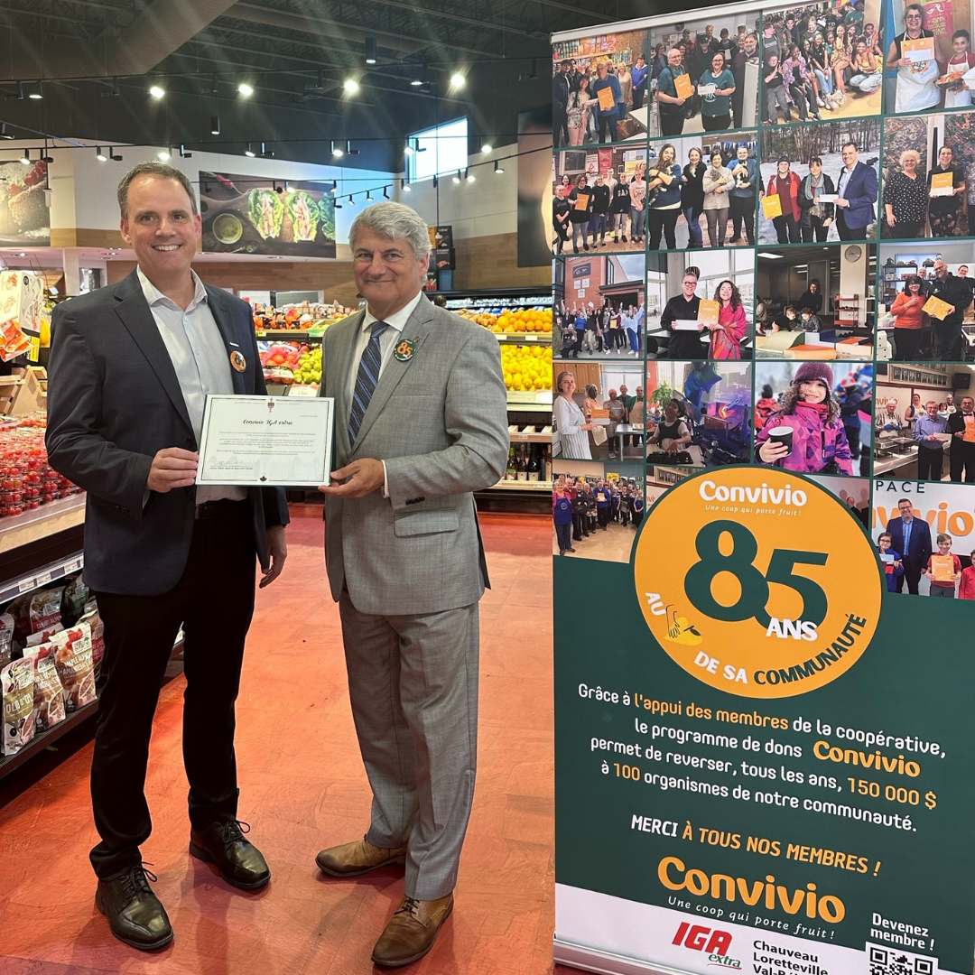 C’est avec ces mots que M le député de Louis-Saint Laurent, M. Gérard Deltell , a souligné ce matin le 85ème anniversaire de notre belle coopérative auprès du directeur général de Convivio, M. Yanic Drouin.