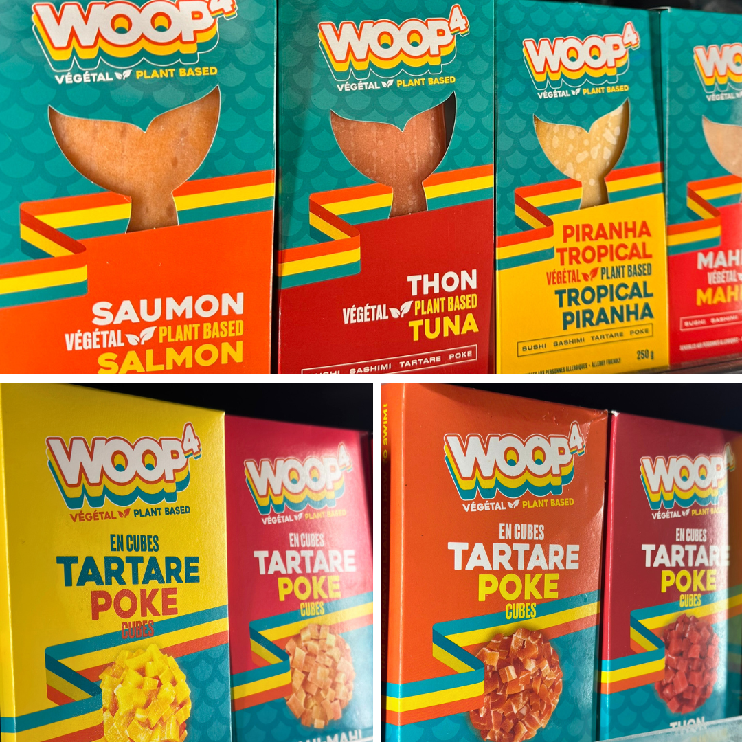 Rendez-vous dans notre rayon des produits biologiques dès aujourd'hui pour découvrir les poissons végétaux Woop4 (en bloc et en tartare) ainsi que les mayonnaises aromatisées.