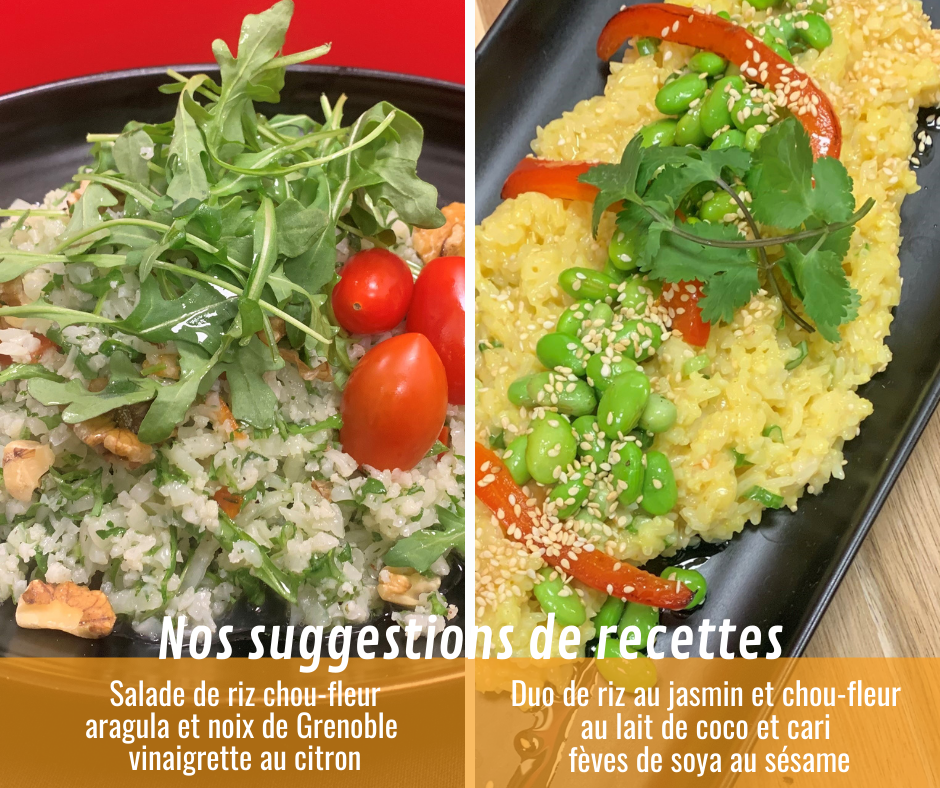 En plus, on vous donne 2 suggestions pour accommoder le riz de chou-fleur.