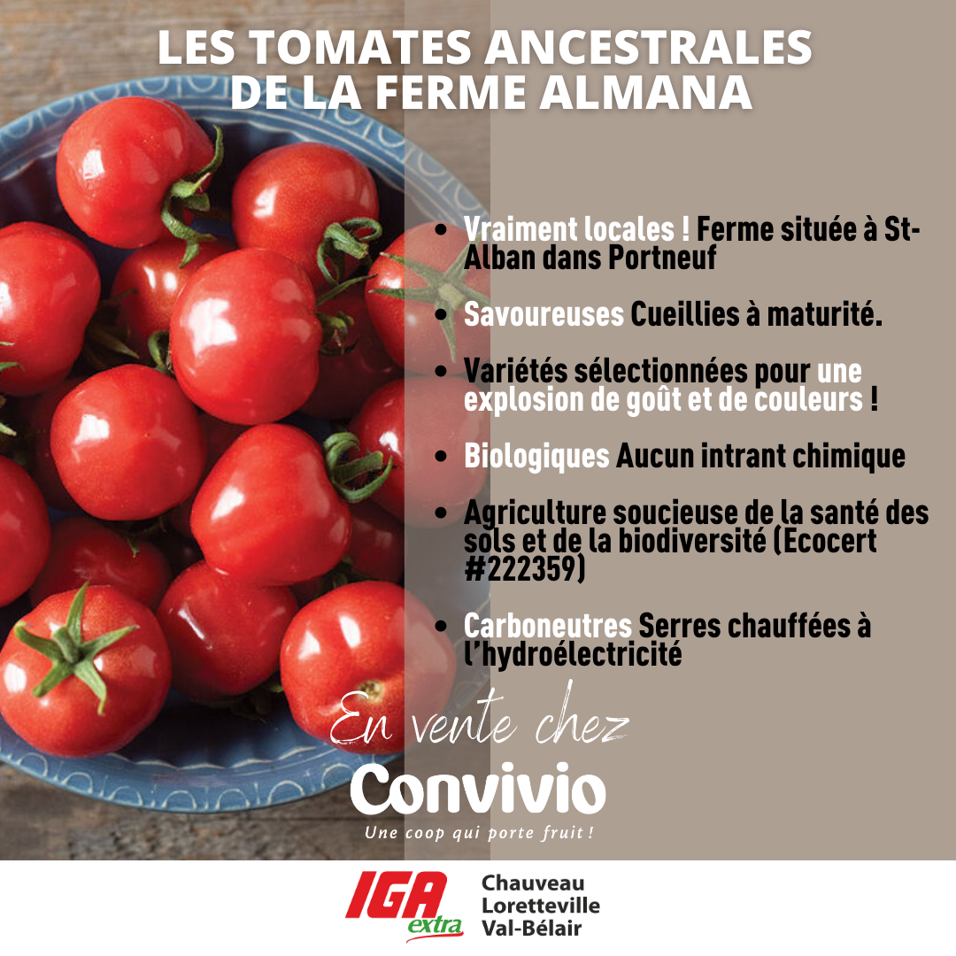 Les tomates ancestrales de la Ferme Almana sont maintenant disponibles chez Convivio IGA extra !
