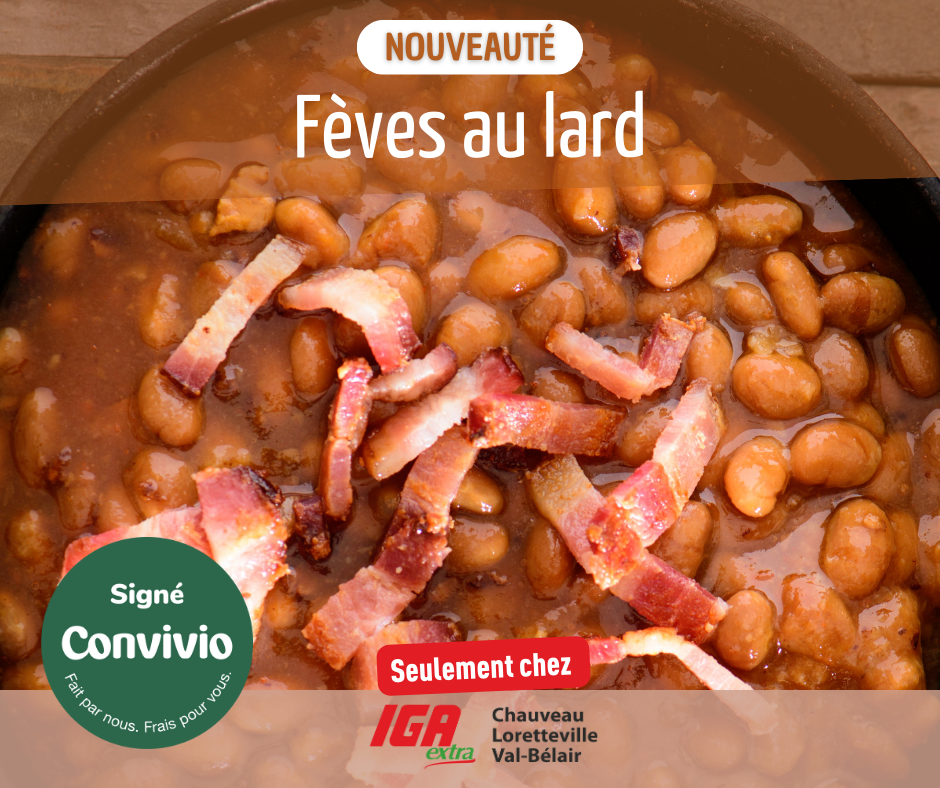 À l'approche de la saison des sucres, Convivio vous propose de retrouver les saveurs authentiques de la cuisine québécoise avec ses nouvelles Fèves au Lard Signé Convivio. Préparées avec soin dans notre cuisine centrale, ces fèves au lard évoquent les repas simples et réconfortants de notre enfance, dans la plus pure tradition québécoise.