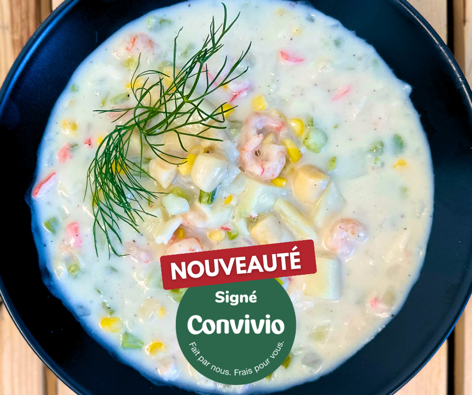Venez découvrir cette nouveauté et laissez-vous tenter par la Chaudrée aux Fruits de Mer Signé Convivio, un petit plaisir qui réchauffe vos soirées.