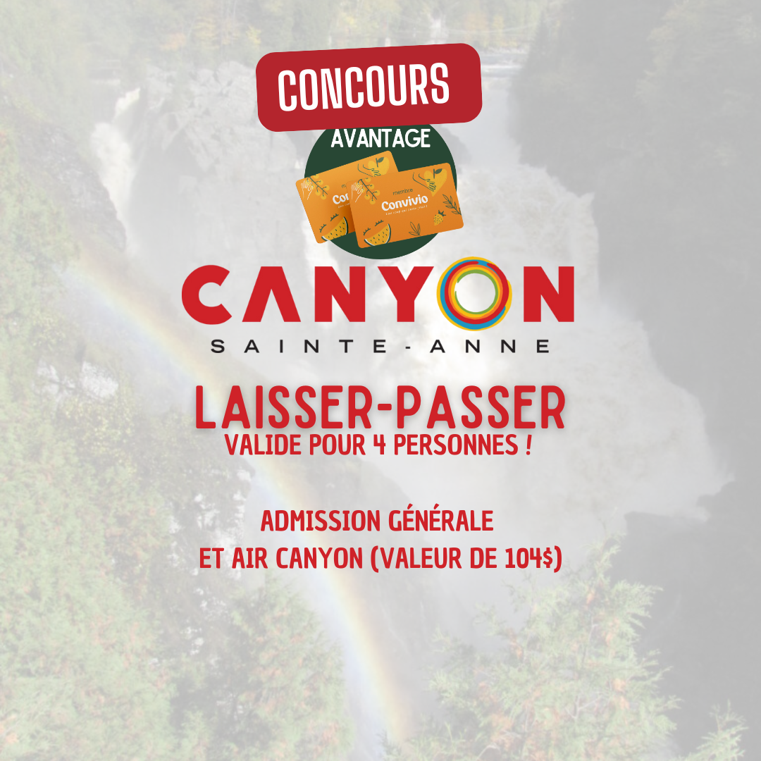 Pour célébrer votre nouvel avantage membre auprès de notre partenaire "Canyon Ste-Anne", nous sommes heureux de vous faire participer à un superbe concours.