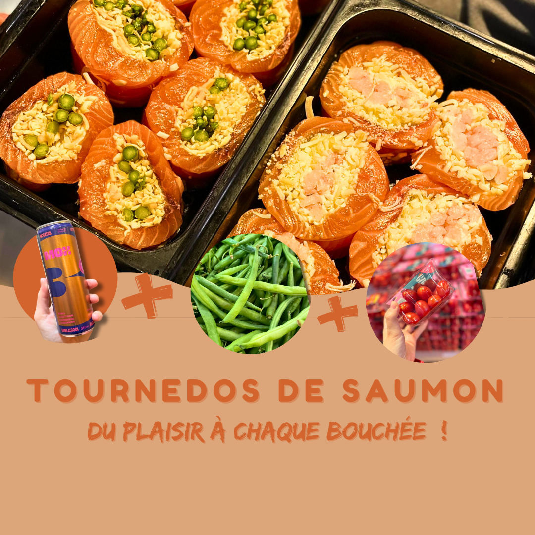 Tournedos de saumon fondant, haricots verts croquants, tomates juteuses et une boisson sans alcool Mox rafraîchissante. Des saveurs équilibrées pour un repas à la fois gourmand et léger.