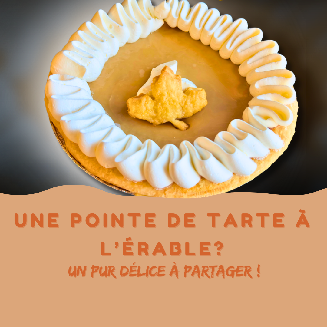 La tarte à l’érable du Royaume de la Tarte : une croûte dorée, une garniture veloutée et un goût d’érable pur qui séduit à chaque bouchée.