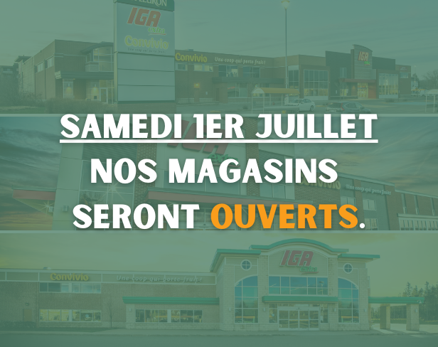 Voici les horaires des Fêtes vos 4 IGA et IGA extra Convivio : Ces horaires sont valables pour : Le IGA extra de Chauveau : 2295 av. Chauveau Le IGA extra de Val-Bélair :...