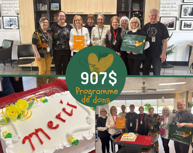 Nous sommes aussi allés à la rencontre des bénévoles du Centre hospitalier Chauveau, où nous avons remis 907 $ pour souligner leur précieuse implication auprès des bénéficiaires.