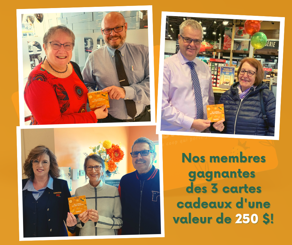 Trois de nos membres ont eu la chance de remporter une carte cadeau de 250 $.