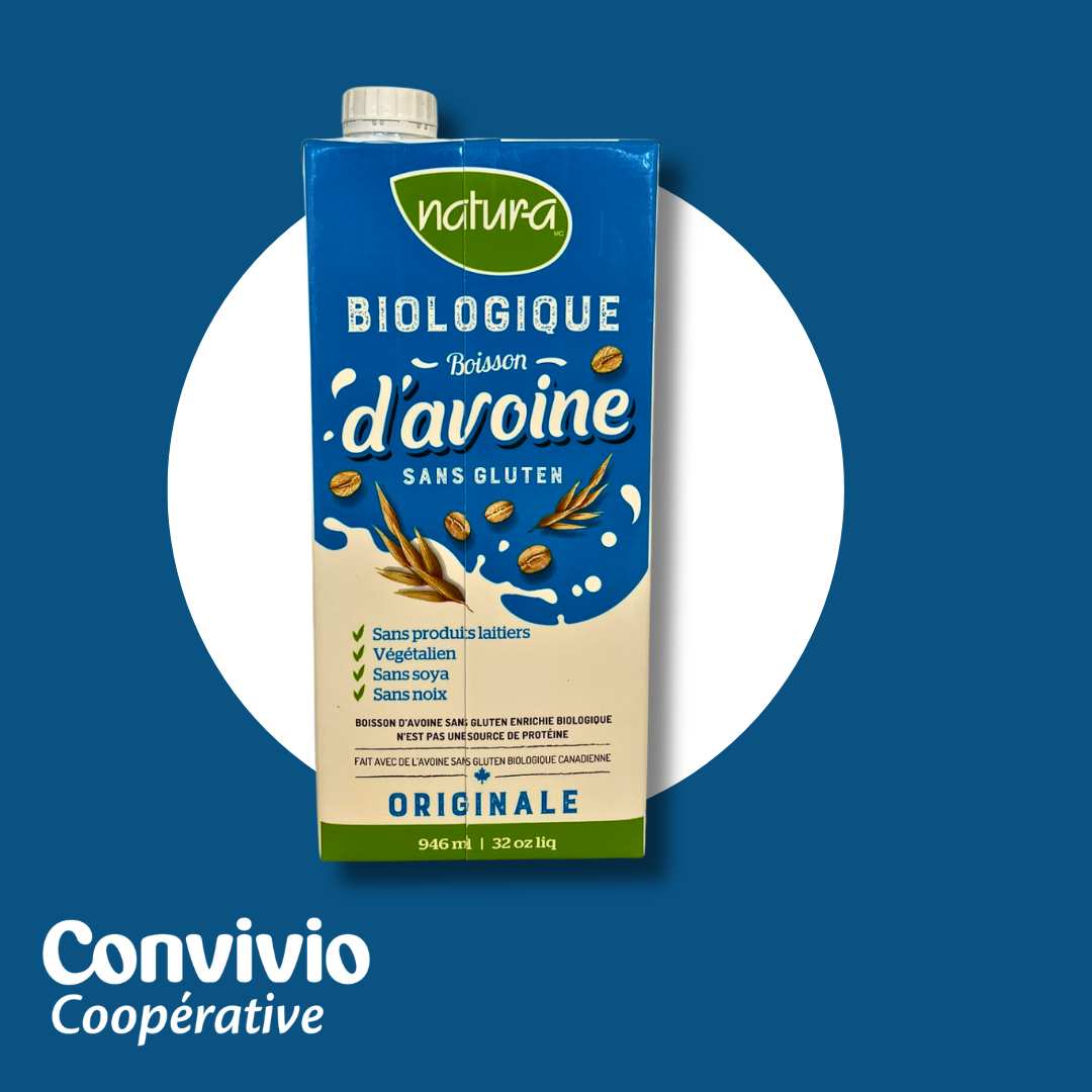 1 boisson d’avoine biologique & sans gluten Natura – 946 ml : Boisson à l’avoine bio sans gluten, enrichie en vitamines et minéraux, avec huiles végétales et gommes naturelles pour une texture douce et équilibrée.