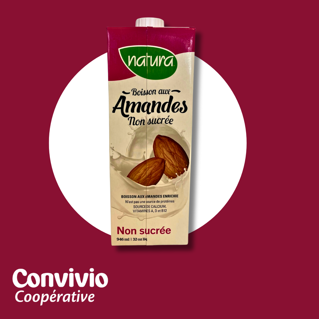 1 boisson d’amandes non sucrée Natura – 946 ml : Base d’amande enrichie en vitamines et minéraux, avec arômes naturels et ingrédients simples pour une boisson saine et équilibrée.