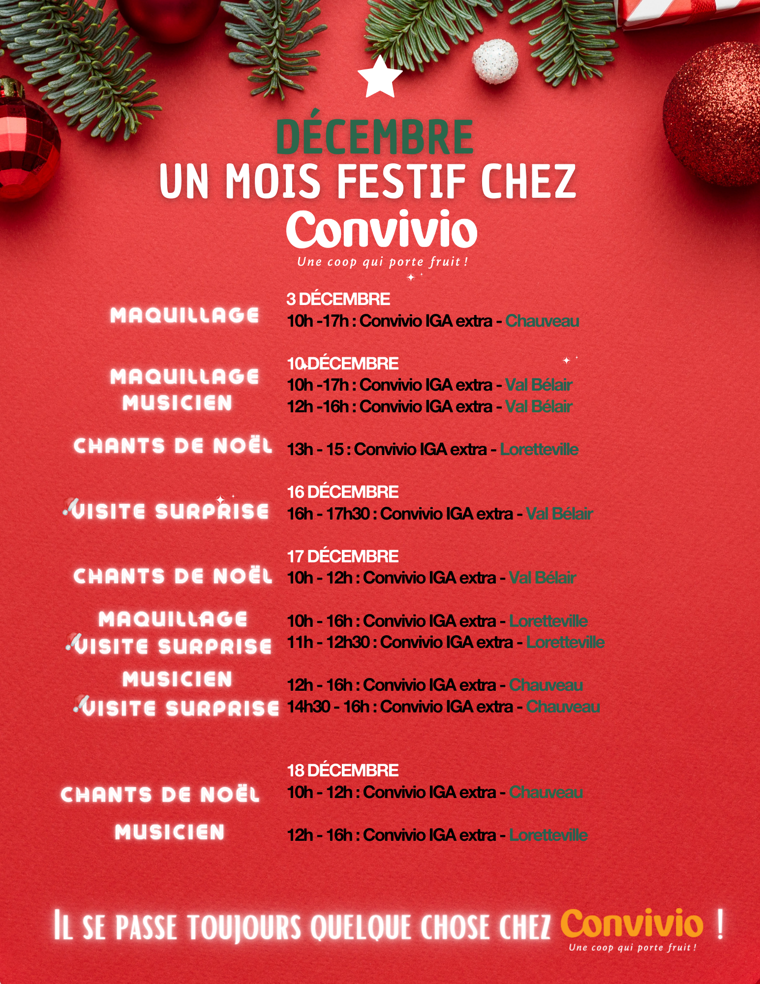 Vous souhaitez vivre un temps des Fêtes grandiose et magique ? Passez nous voir à notre IGA Convivio de Saint-Jean-Chrysostome pour notre évènement gratuit ! Le...