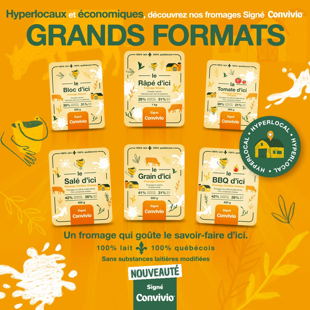 Si cette initiative répond à une situation particulière, Convivio n’a pas attendu ces circonstances pour soutenir l’achat local. Depuis toujours, en partenariat avec notre grossiste Sobeys et des programmes comme « Aliments du Québec », nous mettons en avant dans nos 4 magasins les produits d’ici. Nous soutenons aussi des initiatives comme « Saveurs d’ici » et « Manger Coop », qui valorisent les producteurs et coopératives de producteurs de la région de Québec.