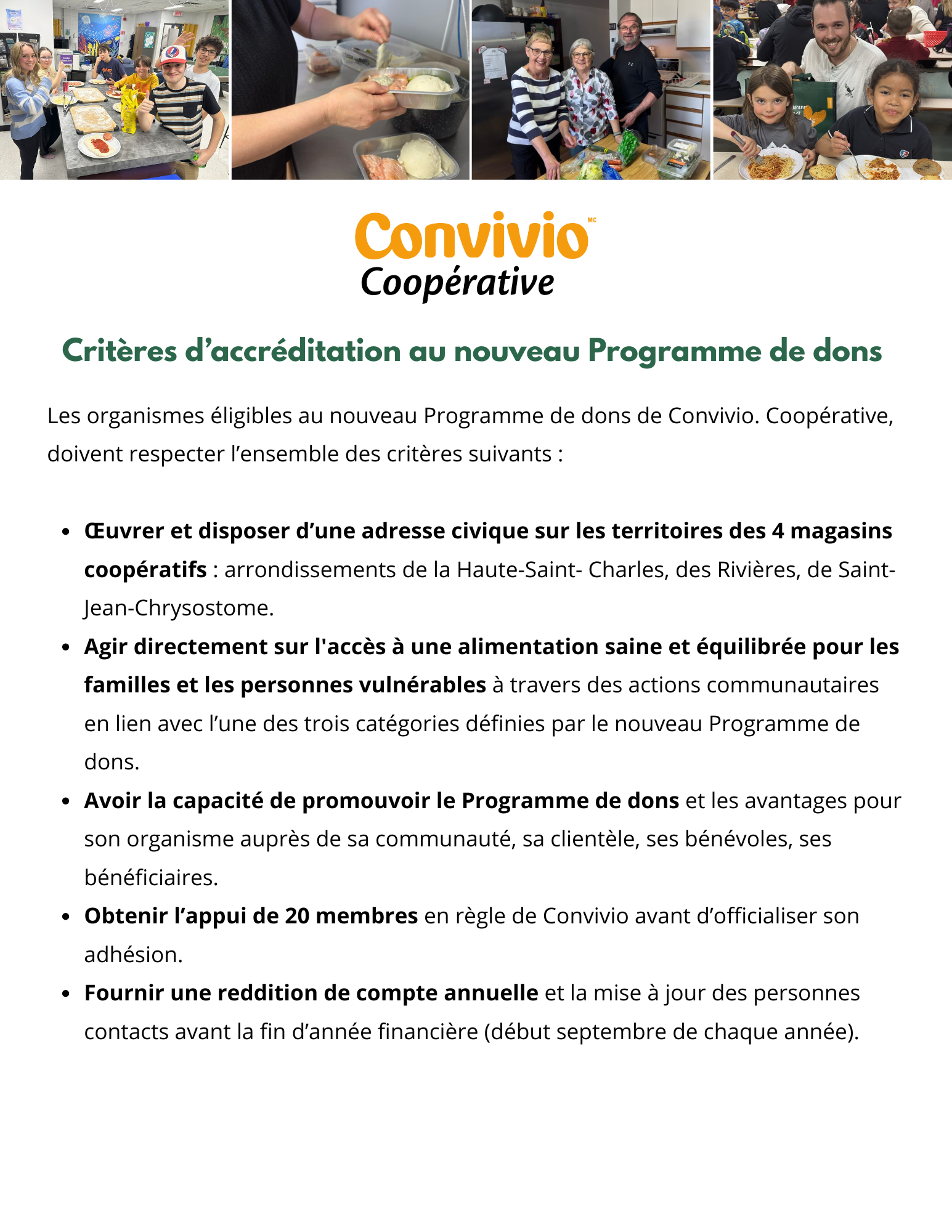 En tant que l’une des plus grandes coopératives en alimentation de détail du Québec, à travers son Programme de dons, Convivio, Coopérative s'engage à: