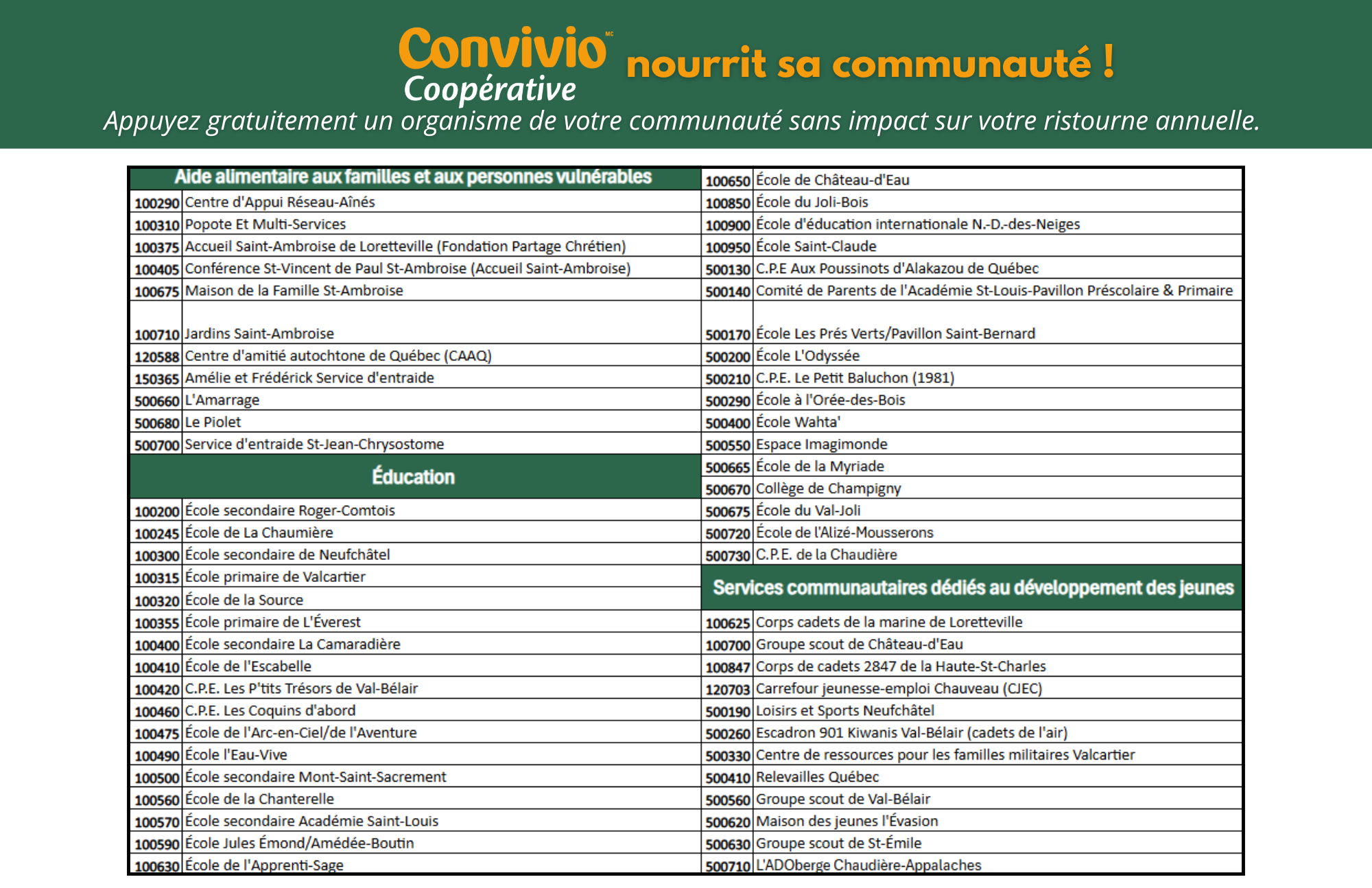 En tant que membre Convivio, vous pouvez appuyer - gratuitement - un organisme de votre communauté (sans impact sur votre ristourne annuelle).